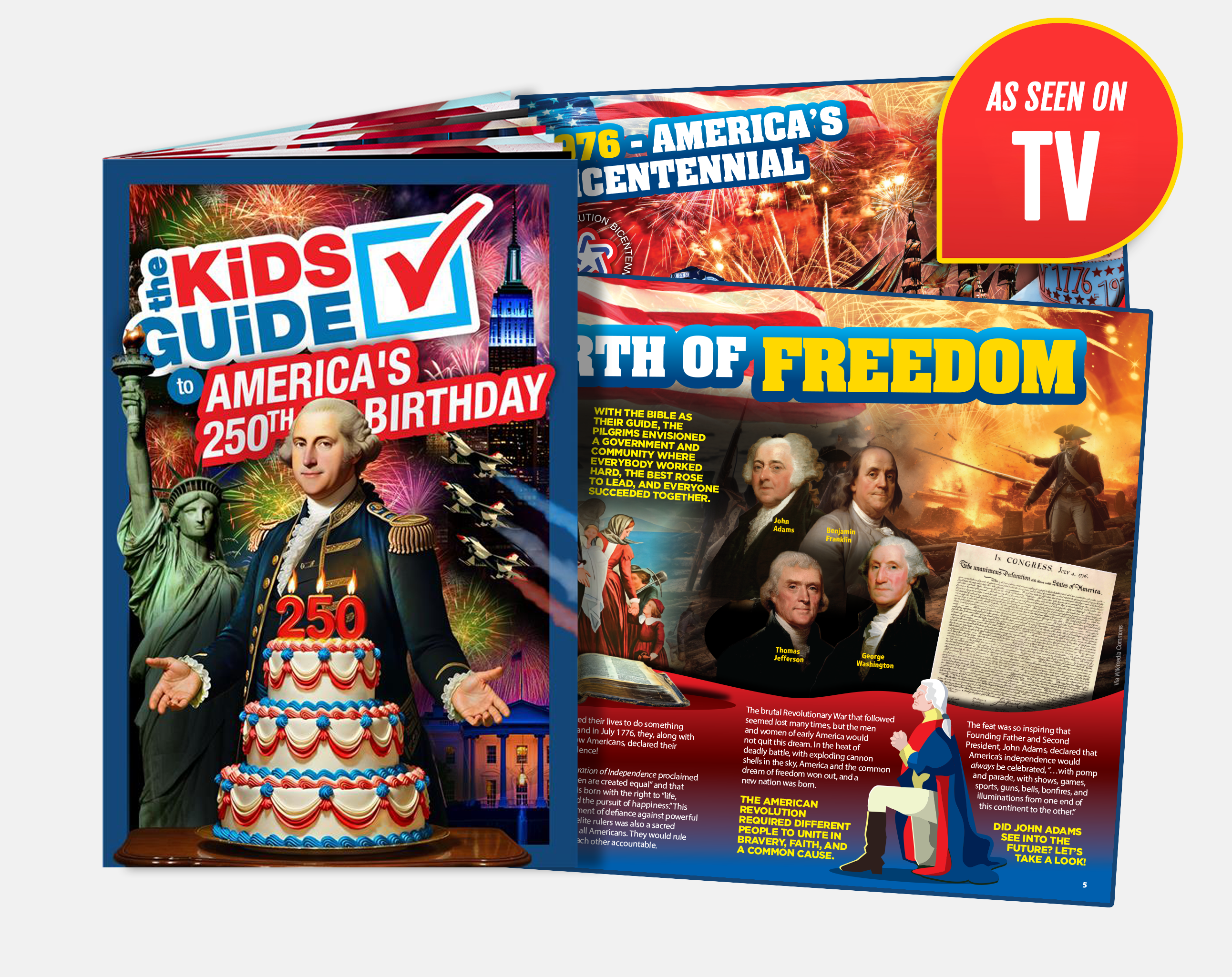 Get The Kids Guide to America’s 250th Birthday plus a bonus guide for free with this special offer. Just pay $2 s&p. Then, every three weeks you’ll receive two new guides, plus unlimited access to The Kids Guide Online for just $29.96 per shipment. Cancel any time.