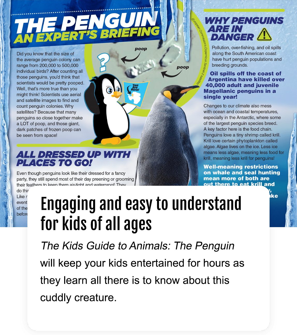As your kids read, they’ll discover how penguins stay warm, what they eat, how they communicate, how they raise their chicks, and so much more. Plus they’ll learn important conservation steps they can take to help penguins thrive for generations to come.