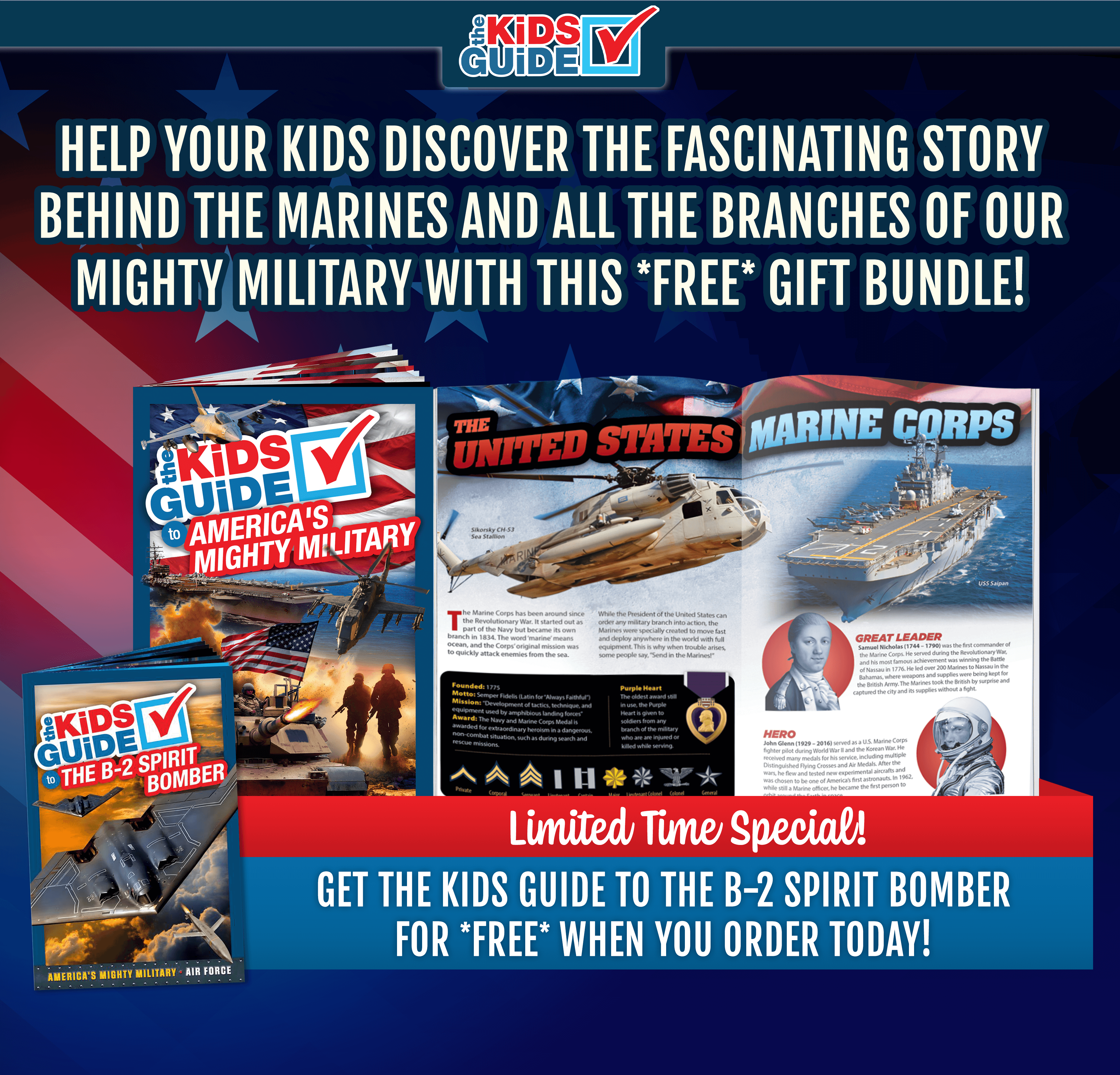 For a limited time, we’re giving away this patriotic gift bundle featuring The Kids Guide to America’s Mighty Military and The Kids Guide to The B-2 Spirit Bomber for *FREE*. Filled with real stories, gripping history, and exciting facts, these guides ignite a deep respect for our heroes and the impressive technology that keep us safe. You just need to pay $1 s&p each, which is a tiny price to shape the next generation’s pride!