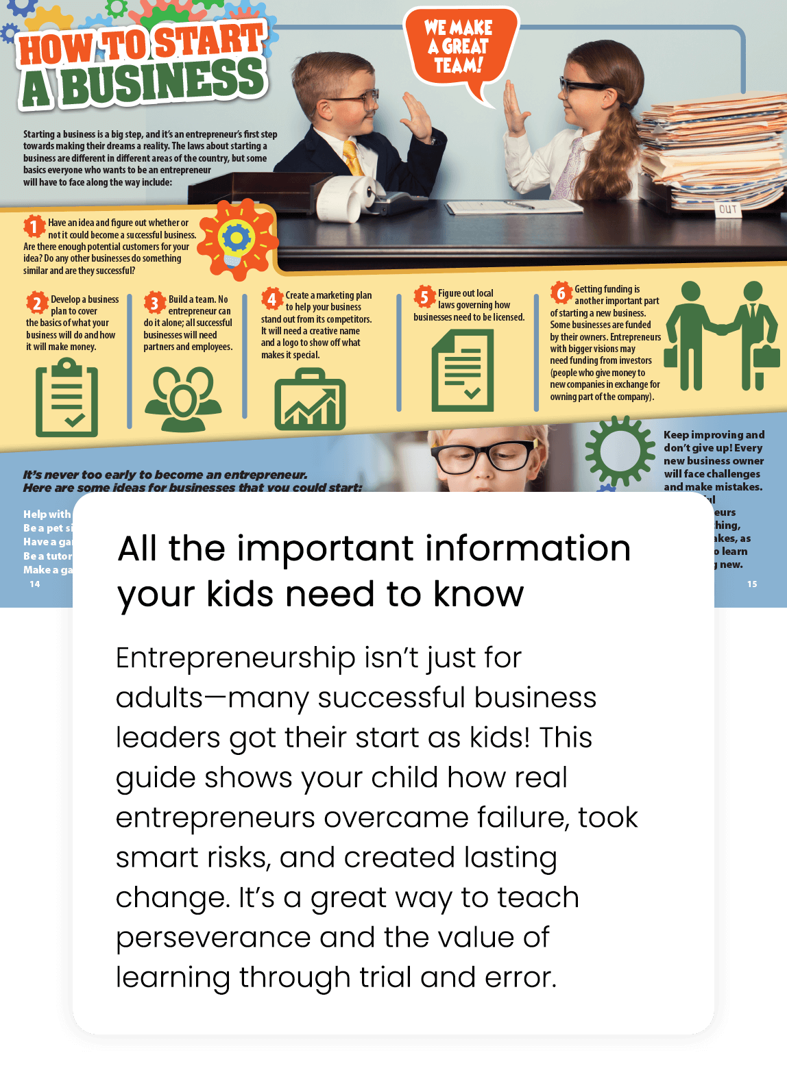 That’s why we created The Kids Guide to Entrepreneurship and Innovation. It introduces kids to the exciting world of business, creativity, and big ideas—from starting simple ventures to understanding how innovation shapes the world around them. And when you order today, you’ll receive a complimentary copy with your purchase!