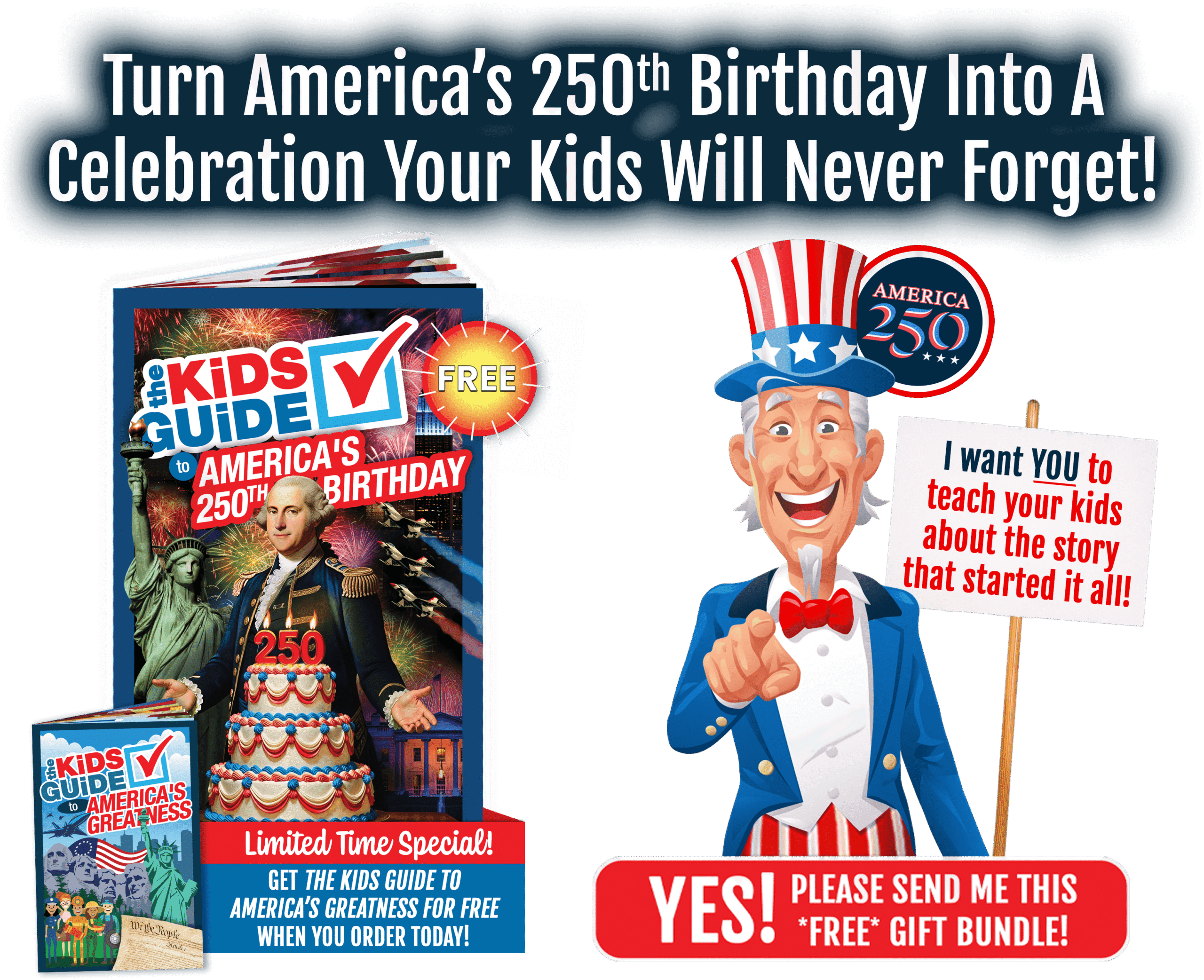 For a limited time, we’re giving away The Kids Guide to America’s 250th Birthday and The Kids Guide to America’s Greatness for free to help your kids and grandkids learn the riveting story of how we fought for and achieved our independence, and why we celebrate our freedom every year. You just need to pay $1 s&p each, which is a small price to share the truth with your kids.