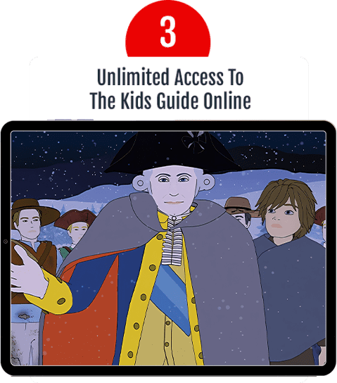As an added bonus, we’re giving you instant access to The Kids Guide Online, giving your family access to dozens of entertaining video lessons, flip-books, and more! Plus as part of this special offer, we’ll send your kids two new Kids Guides featuring great patriotic lessons, plus other important subjects schools don’t teach, every three weeks for only $14.98 each. Along with each shipment, your family will enjoy uninterrupted access to The Kids Guide Online at no added cost! You can cancel at any time. And, if you’re not 100% satisfied, let us know within 30 days to receive a full refund of your purchase price.