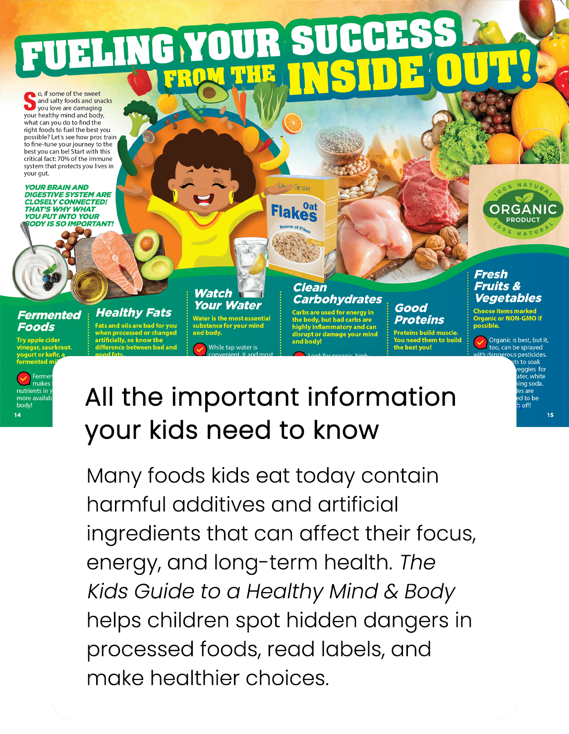 Many popular foods that kids love contain harmful ingredients that are detrimental to their energy, focus, and long-term health. As parents, we know that a healthy body begins with a healthy mind. By helping kids understand how food additives and unhealthy ingredients are toxic to their growing bodies, kids can take charge of their own well-being and build healthy habits that they’ll carry into their future.
