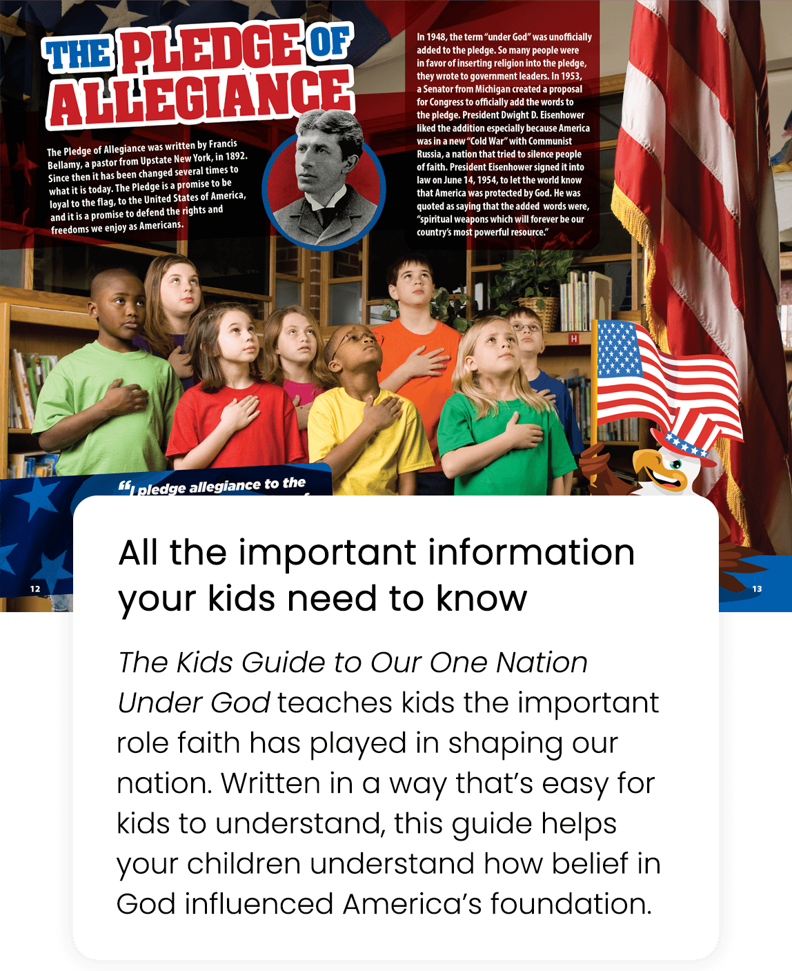 It’s why we created The Kids Guide to Our One Nation Under God. This important guide helps kids discover how God shaped the greatest nation on Earth and how His role remains essential to our future as a nation! That’s why we’re giving it away for *FREE* with this special offer.