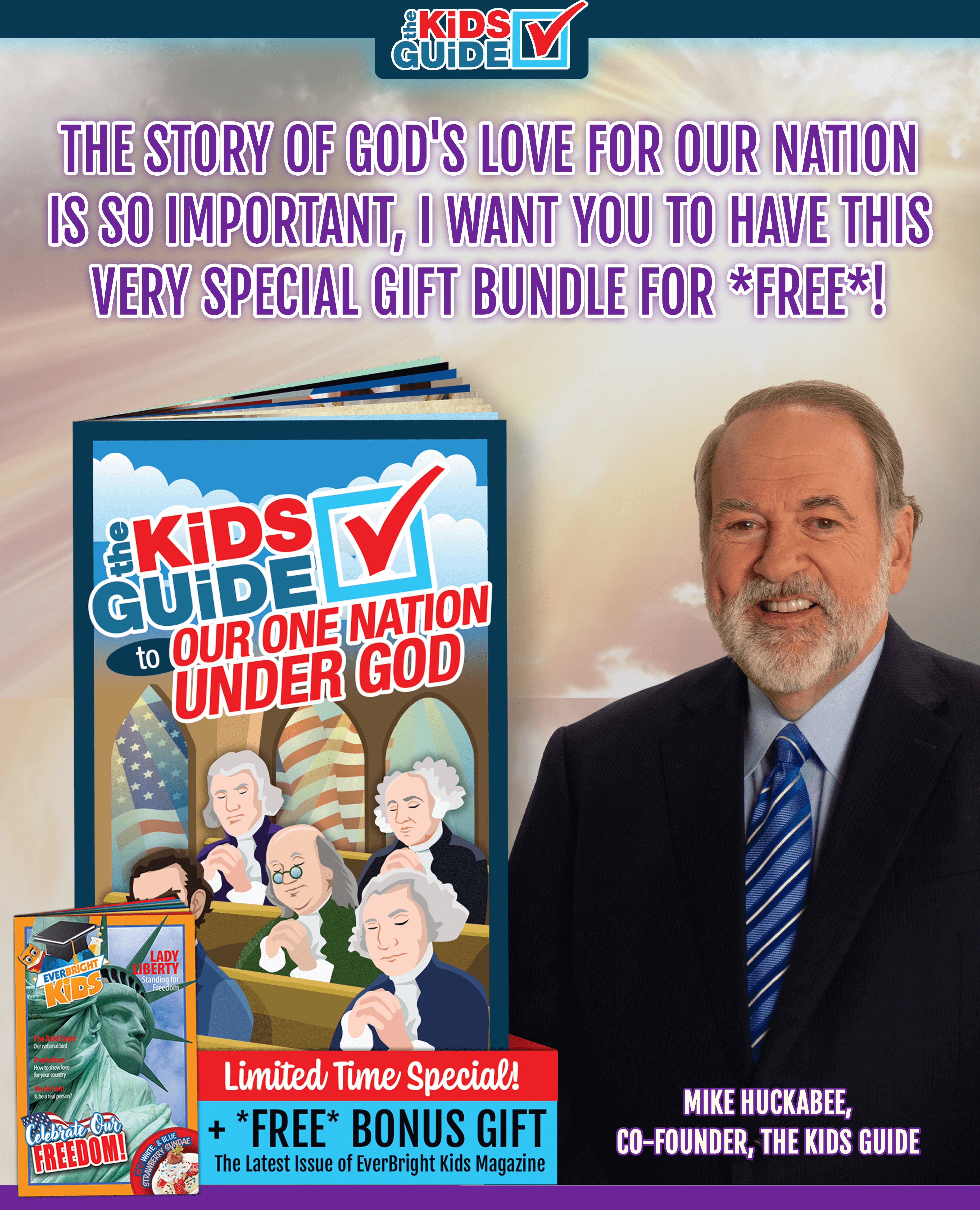 It’s why we created The Kids Guide to Our One Nation Under God. This important guide helps kids discover how God shaped the greatest nation on Earth and how His role remains essential to our future as a nation! That’s why we’re giving it away for *FREE* with this special offer.