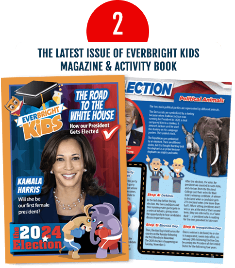 That’s why we’re giving away our FREE Election Gift Bundle to educate our nation’s future voters. This important bundle includes The Kids Guide to the Presidential Election and the latest issue of the award-winning EverBright Kids Magazine and Activity Book, and you get them both for just $1 s&p each!